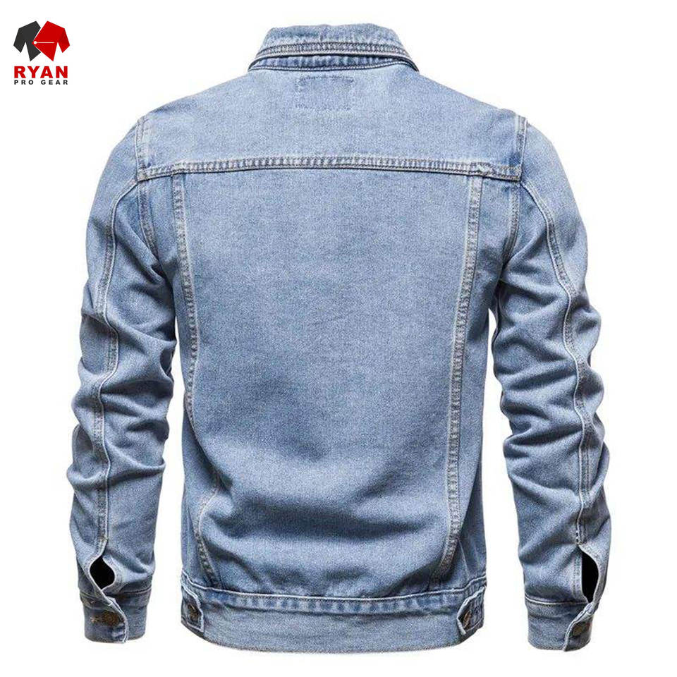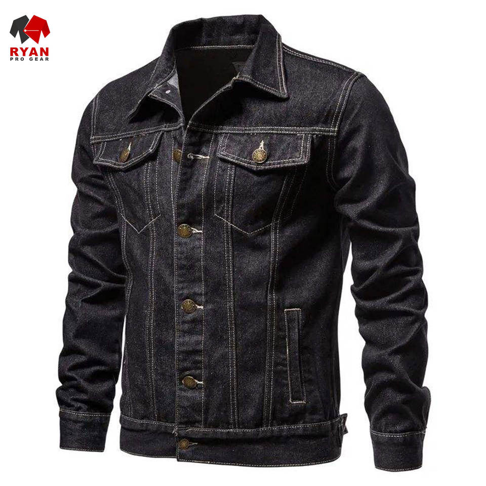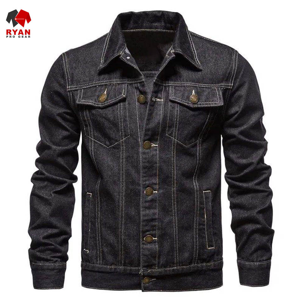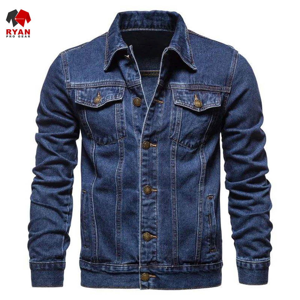 แจ็คเก็ตยีนส์คุณภาพพรีเมียมแบบสั่งทำพิเศษสำหรับผู้ชาย ยี่ห้อ Ryan Pro Gear ปิดด้วยกระดุม บุด้วยผ้าควิลท์ แห้งเร็ว ดีไซน์ OEM