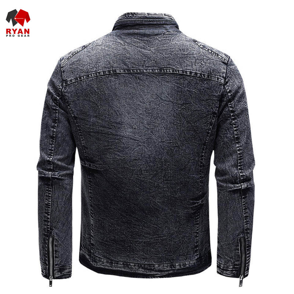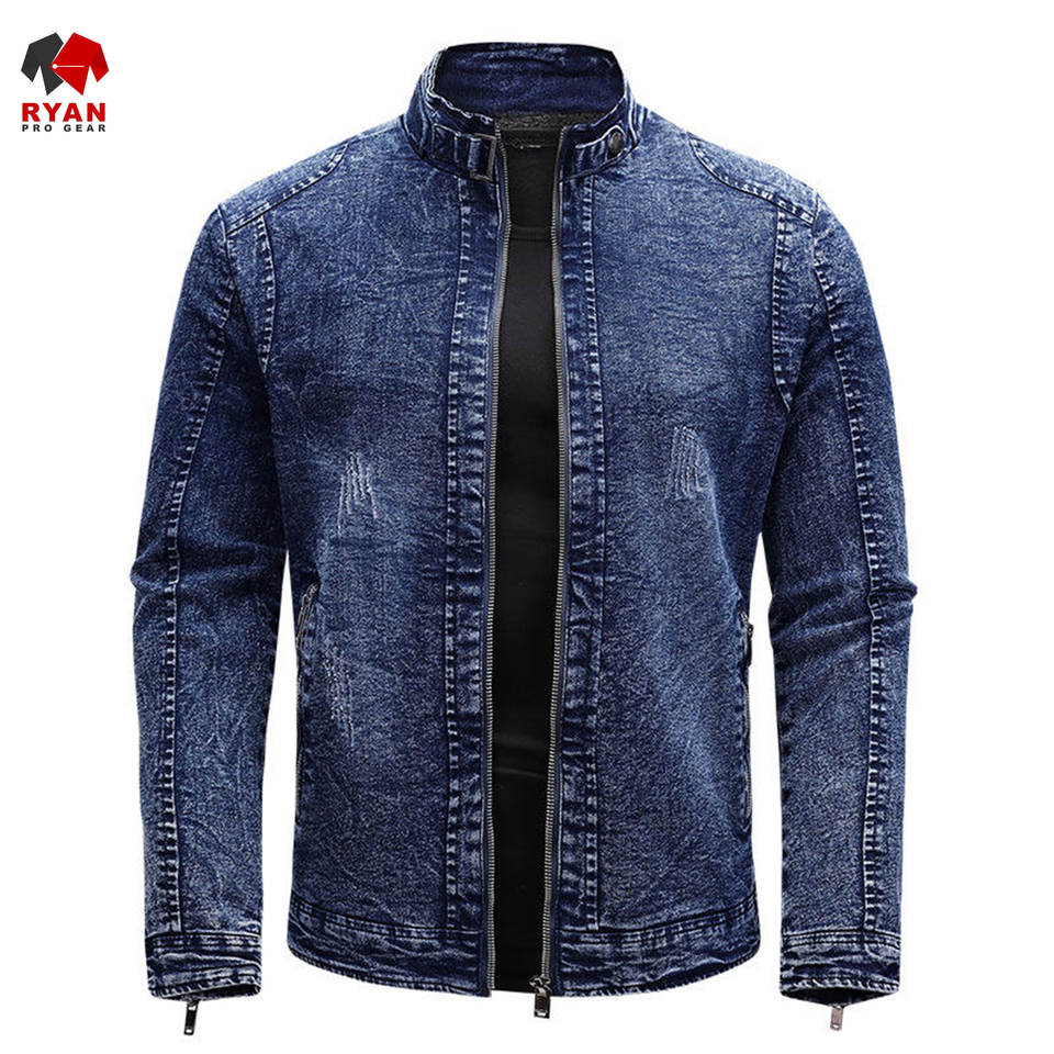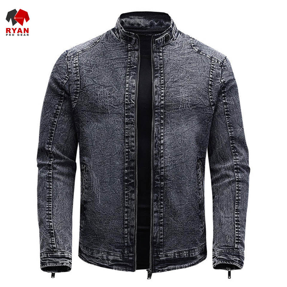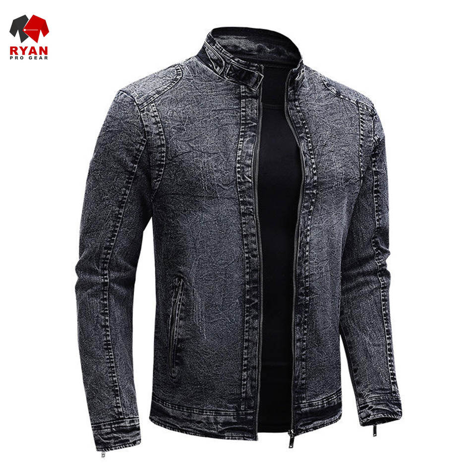 แจ็คเก็ตยีนส์คุณภาพพรีเมียมแบบสั่งทำพิเศษสำหรับผู้ชาย ยี่ห้อ Ryan Pro Gear ปิดด้วยกระดุม บุผ้าควิลท์ แห้งเร็ว คอตั้ง