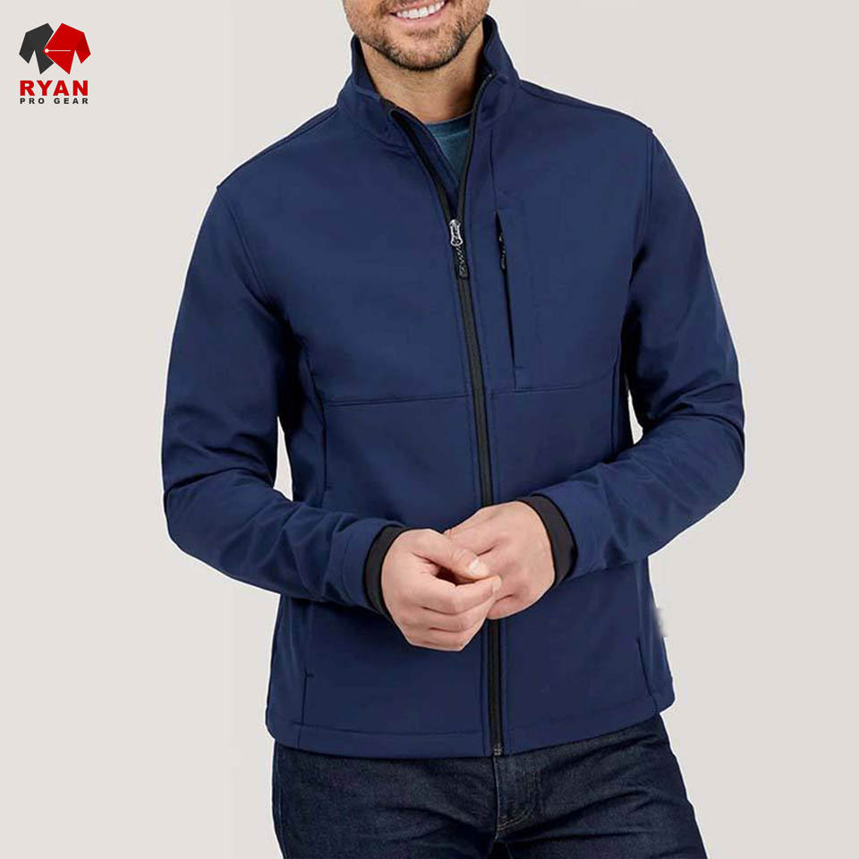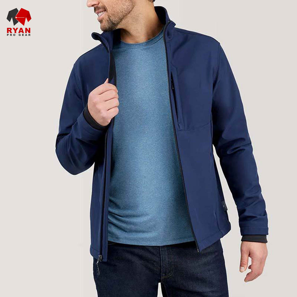 แจ็คเก็ตซอฟต์เชลล์คุณภาพพรีเมียม Ryan Pro Gear สำหรับผู้ชาย กันน้ำ กันลม ผลิตจากผ้าถักที่เป็นมิตรต่อสิ่งแวดล้อม คอตั้ง