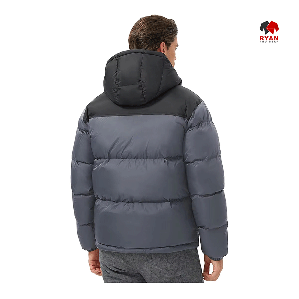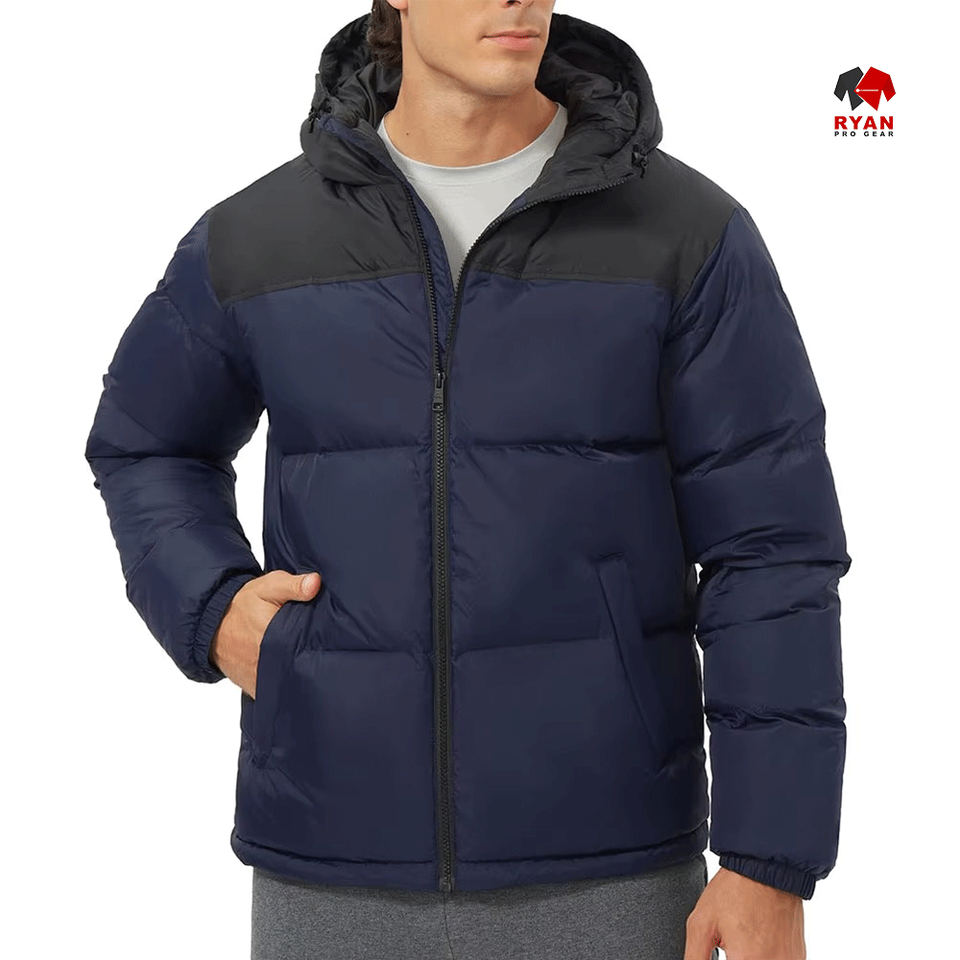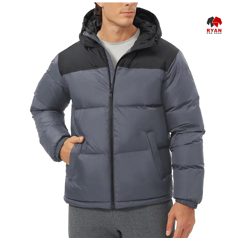 แจ็คเก็ตพัฟเฟอร์กันน้ำแบบมีฮู้ด ซิปปิด แบรนด์ Ryan Pro Gear สำหรับผู้ชาย สไตล์ลำลอง รับสกรีนโลโก้