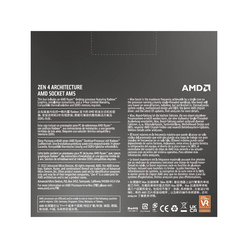 ซีพียู Ryzen Graphics Desktop Processor สำหรับ AMD รุ่น RYZEN 5 7600X 6 คอร์ 12 เธรด สูงสุด 5.3GHz 38MB 105W AM5