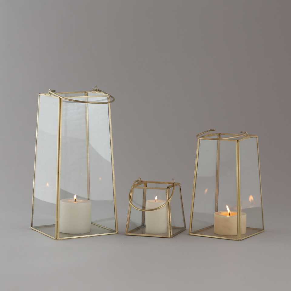 S/3 Brass Lantern Tall Metal Candle Holders for Garden & Home Decor Weddings (Aluminium Iron Steel)