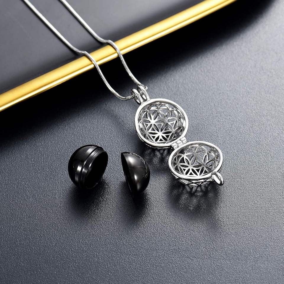 จี้ใส่เถ้ากระดูกทำจากโลหะสแตนเลสสีดำมีขนาดเป็นรูปทรงกลวงสามารถกำหนดขนาดได้เองสำหรับเครื่องประดับสำหรับงานศพส่วนบุคคลของมนุษย์