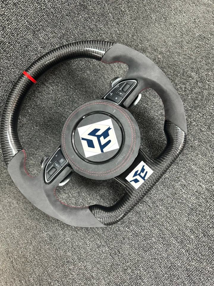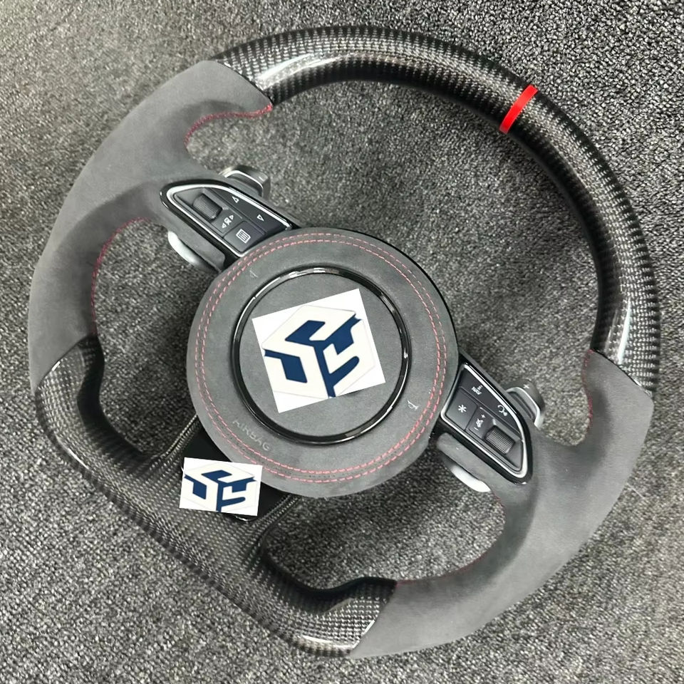 พวงมาลัยคาร์บอนไฟเบอร์แบบ S Line Half พร้อมไฟ LED สำหรับ Audi A3/A4/A5/A6/Q5/Q7 ซีรีส์ 6 X6