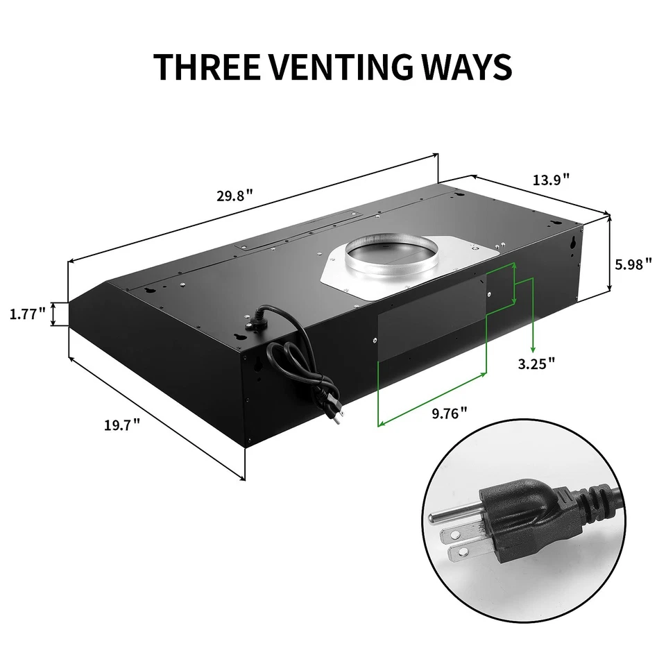 S-N-D-O-A-S 600C-F-M ชุดครัวใต้ตู้ เฮดดิ้งค์ 30 นิ้ว สีดำ พร้อมพัดลมดูดควันแบบ LED รุ่นใหม่