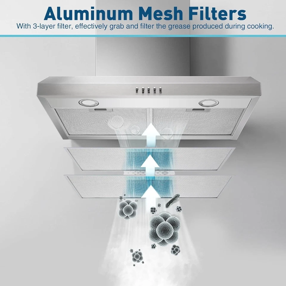 เครื่องดูดควันในครัวแบบติดตั้งใต้ตู้ขนาด 30 นิ้ว รุ่น S-N-D-O-A-S 600 CFM ทำจากสแตนเลส 3 ระดับความเร็ว