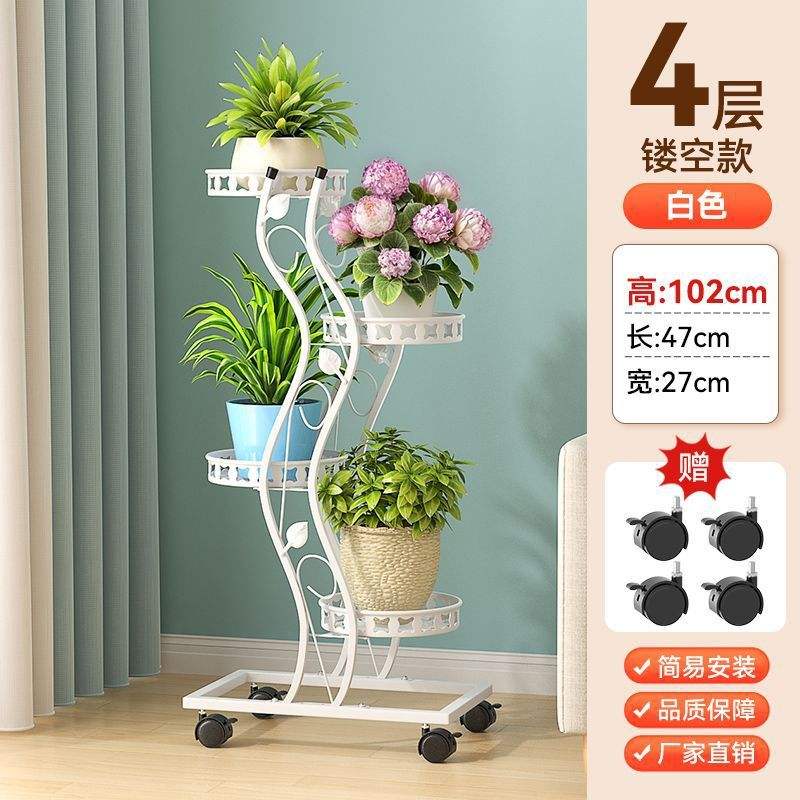 ขาตั้งดอกไม้โลหะรูปตัว S พร้อมล้อเลื่อน สำหรับระเบียงและห้องนั่งเล่น ใช้จัดแสดงต้นไม้บนพื้น
