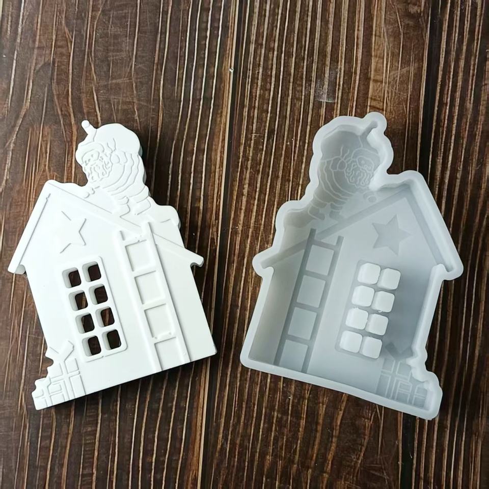 S0017อินรูปปั้นตกแต่งบ้านซานตาคลอสและครอบครัว3D แม่พิมพ์คัพเค้กซิลิโคนสำหรับอบขนมบ้าน