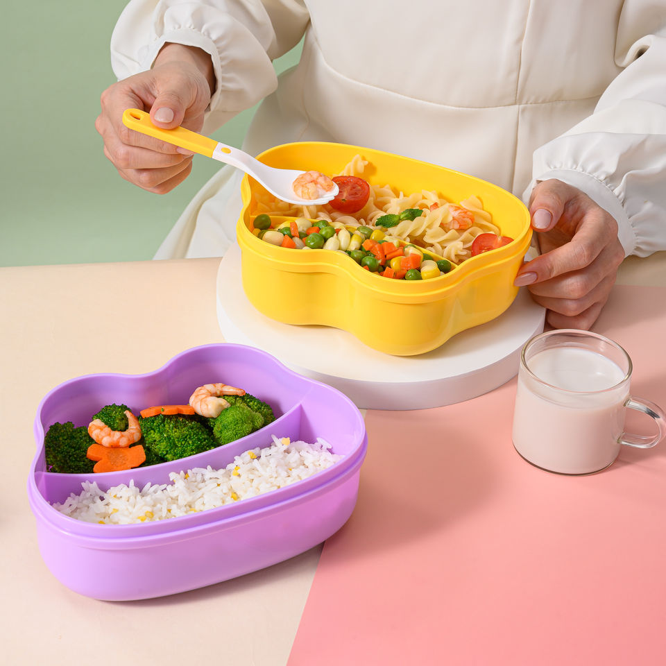 กล่องข้าวพลาสติกทรงสี่เหลี่ยมสำหรับนักเรียน ปลอดสาร BPA สามารถอุ่นได้ 3 ช่อง รับสกรีนลาย UV ตามแบบ