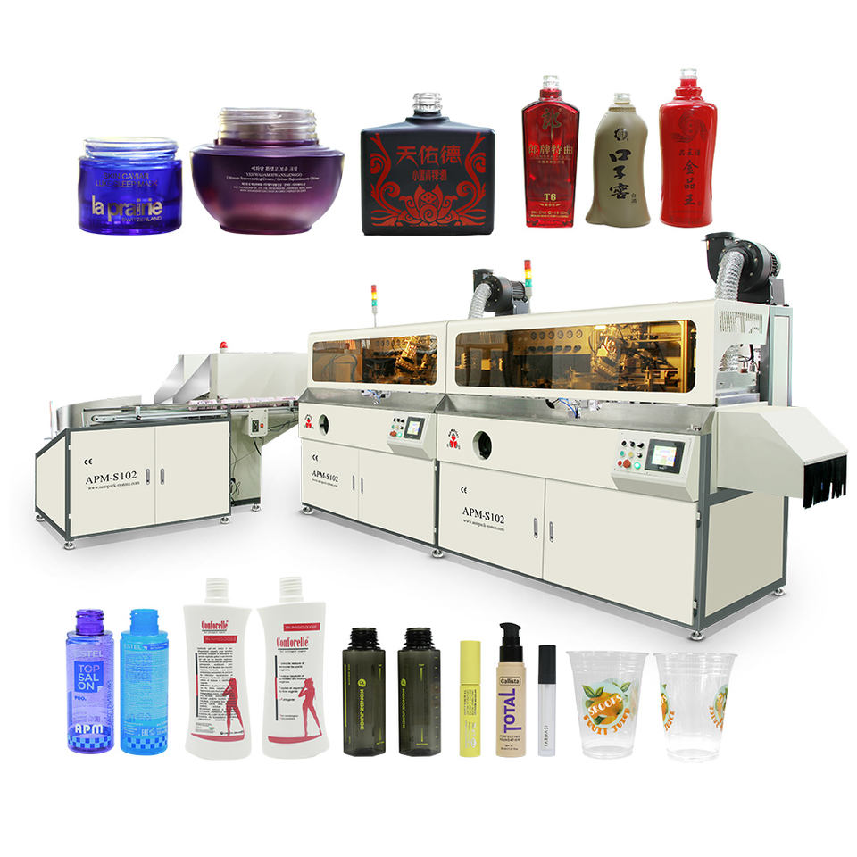 เครื่องพิมพ์สกรีนขวดทรงกลม ทรงรี ทรงเหลี่ยม รุ่น S102 พร้อมระบบอบแห้งด้วยไฟ LED หรือ UV