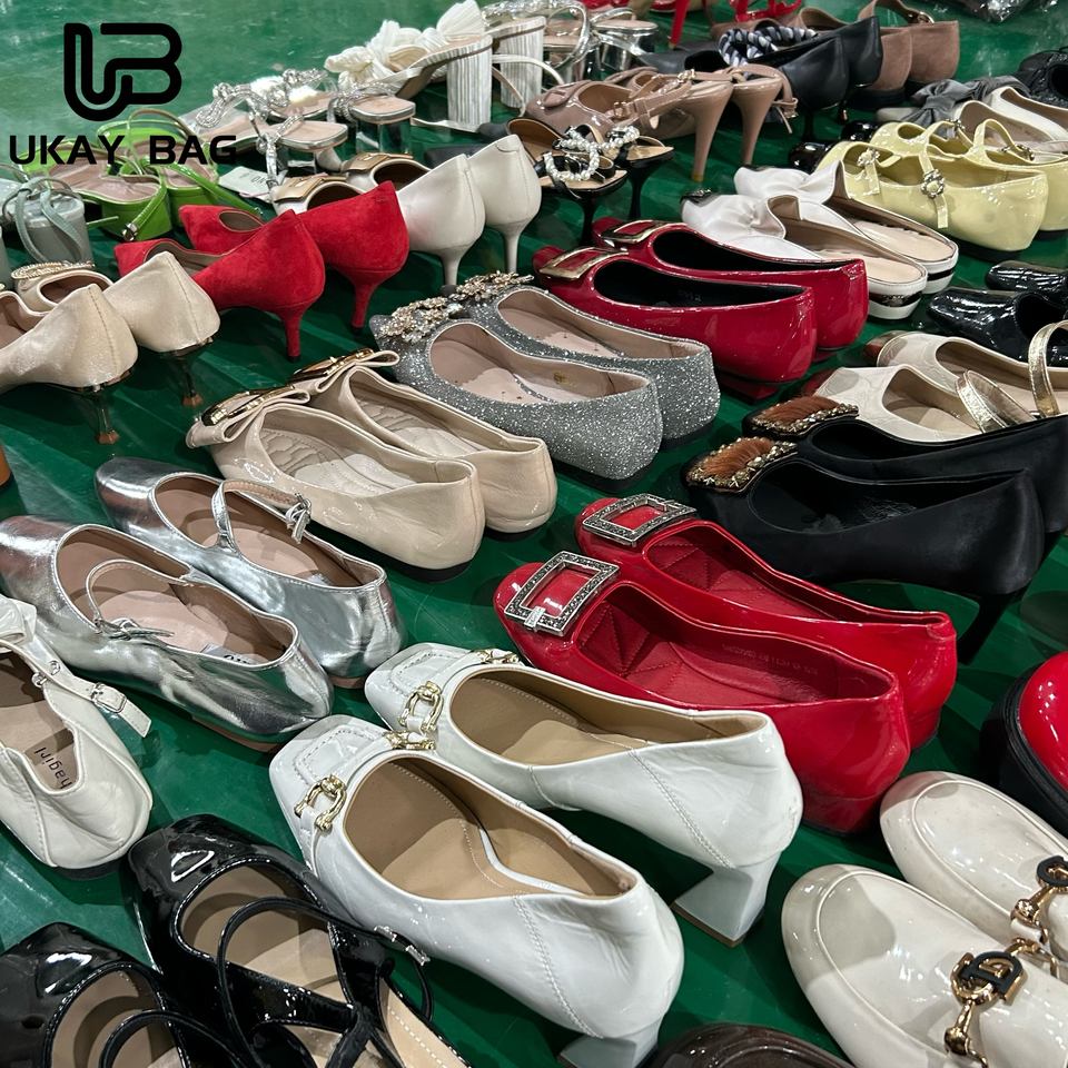 รองเท้ามือสองจาก S15รองเท้าแตะผู้หญิงส้นสูงส้นเตี้ยมือสองจากอิตาลี