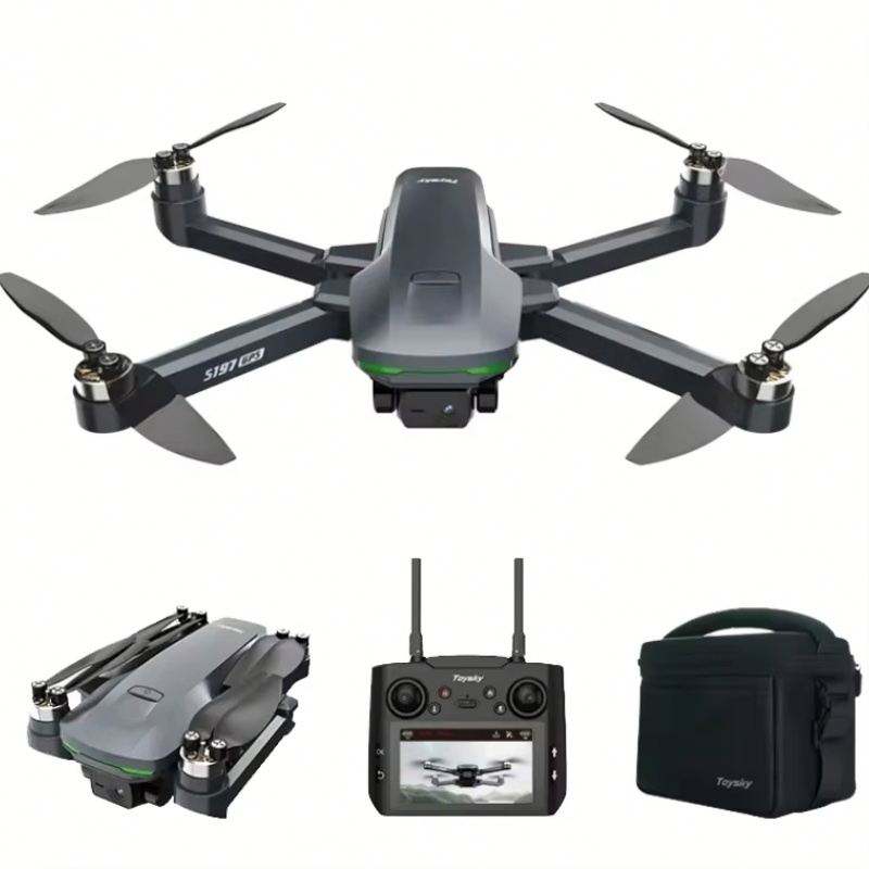 ชุดโดรนพับได้ระดับมืออาชีพ S197 ขนาด 4.5 นิ้ว หน้าจอ 4K HD พร้อมระบบควบคุมการบิน FPV GPS มอเตอร์แบบไร้แปรงถ่าน ชุดอุปกรณ์ครบชุดทำจากพลาสติก