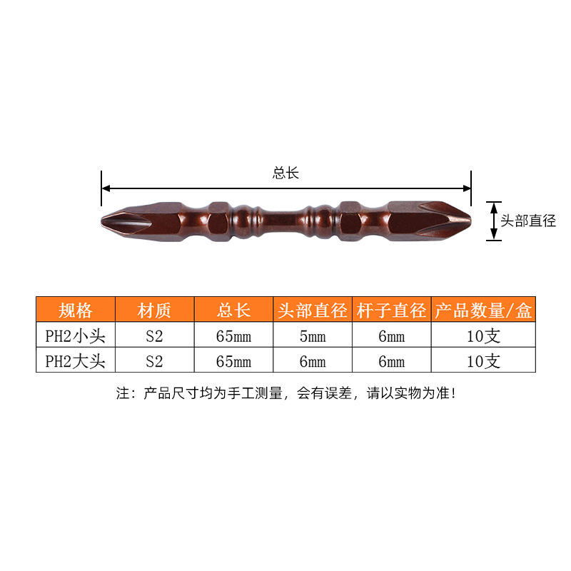 ดอกไขควงฟิลลิปส์สองด้าน S2 ขนาด 65 มม. PH2 แบบแม่เหล็ก ขัดทราย เกรดอุตสาหกรรม
