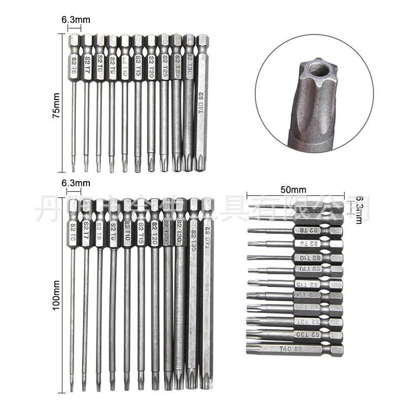 ชุดดอกไขควงหัว Torx แบบกลวง ขนาด 6.3 มม. พร้อมด้ามหกเหลี่ยม ความยาว 50 75 100 มม.
