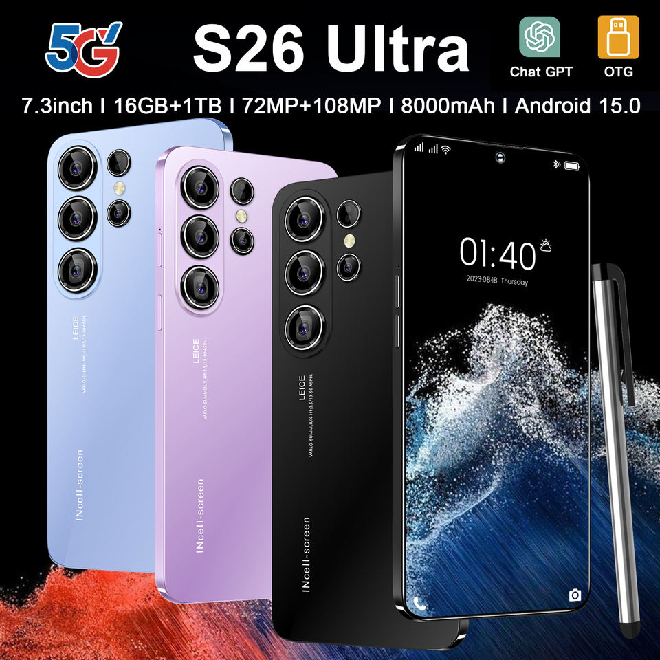 สมาร์ทโฟน S26 Ultra 5G LTE/CDMA หน้าจอ 7.3 นิ้ว 90Hz 2K ความจุ 16GB+1TB แบตเตอรี่ 8000mAh+