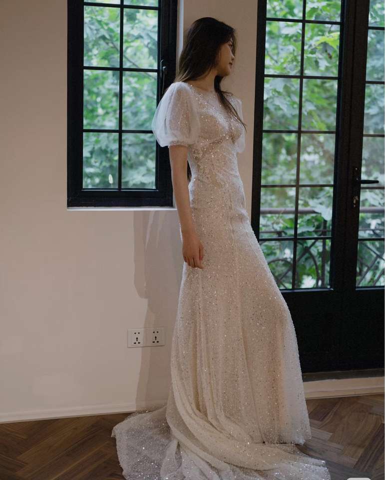 S2609L 2016แฟชั่นใหม่ชุดเดรสแต่งงานทรงหางปลาเงือกสุดโรแมนติกแบบเทพนิยายประดับเลื่อมและเพชรแขนสั้น