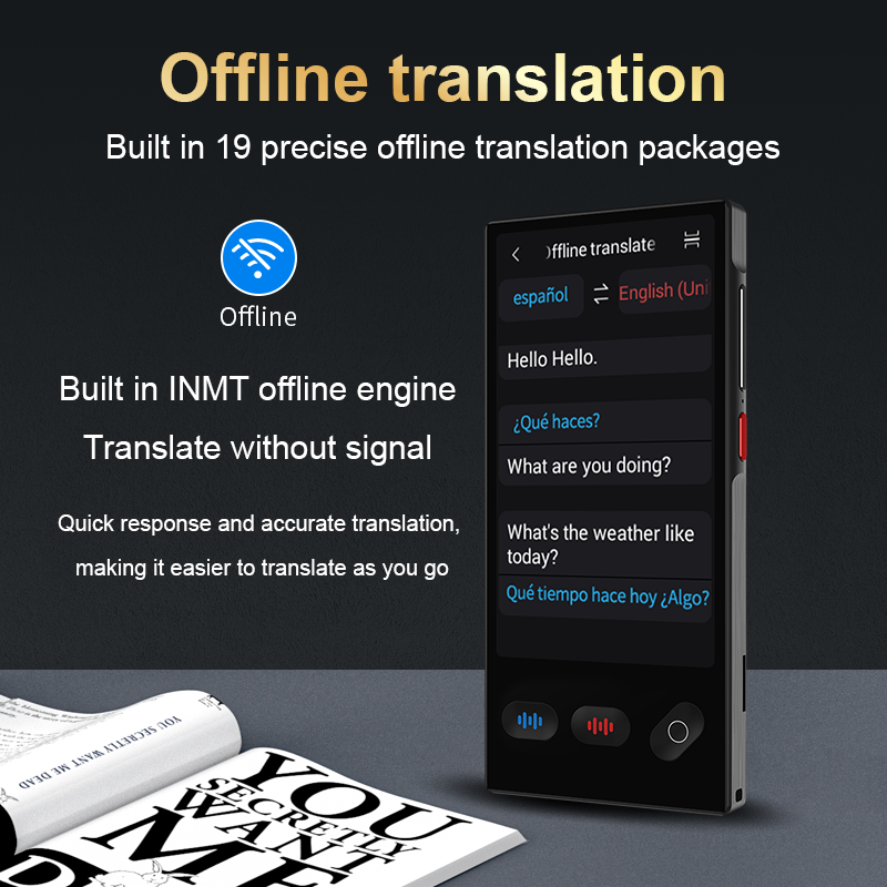 บลูทูธ, แบบพกพา, ไวไฟ, หน้าจอสัมผัส, MP3 เล่น, สร้างใน Flash, การรับรู้เสียง Ai, เสียงการแปล, การแปลภาษา, ลำโพงในตัว