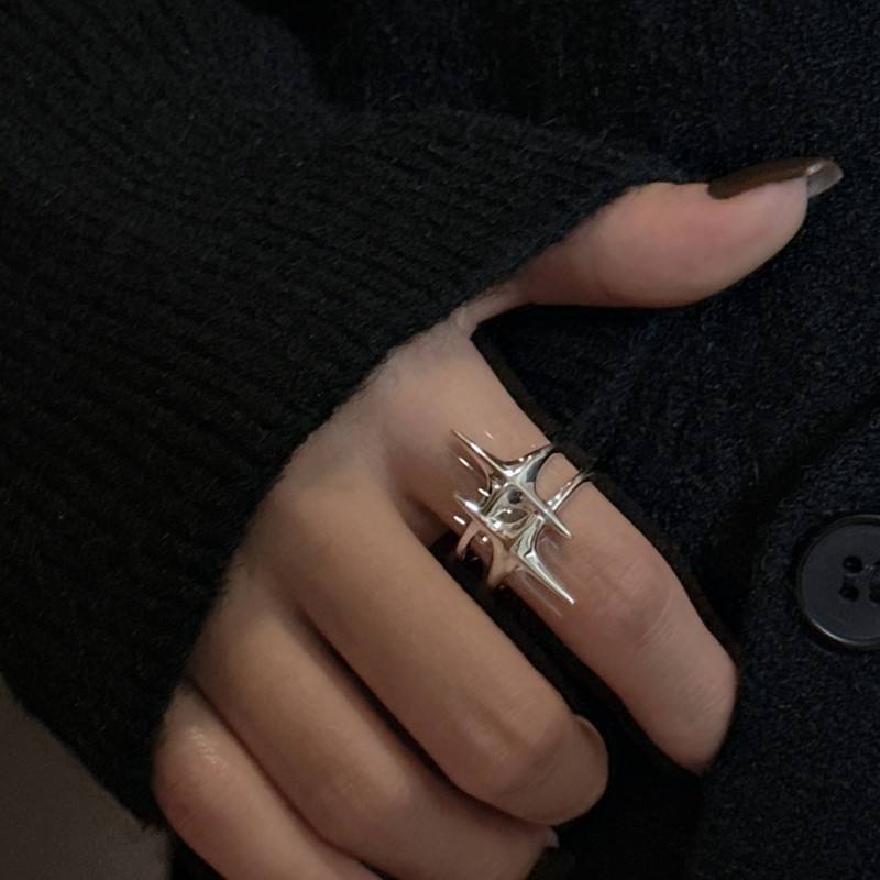แหวน S92รูปดาวสี่แฉกสีเงินสเตอริงสไตล์เกาหลีเรียบง่ายและทันสมัยเครื่องประดับเงินขายส่ง