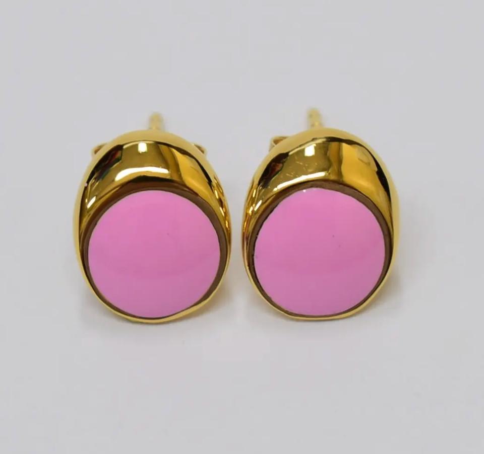 ต่างหูทรงกลมเคลือบทอง 14K เงินแท้ S925 ประดับด้วยสีชมพูเคลือบเงา สามารถปรับแต่งได้สำหรับขายปลีก OEM ODM ผลิตในประเทศไทย