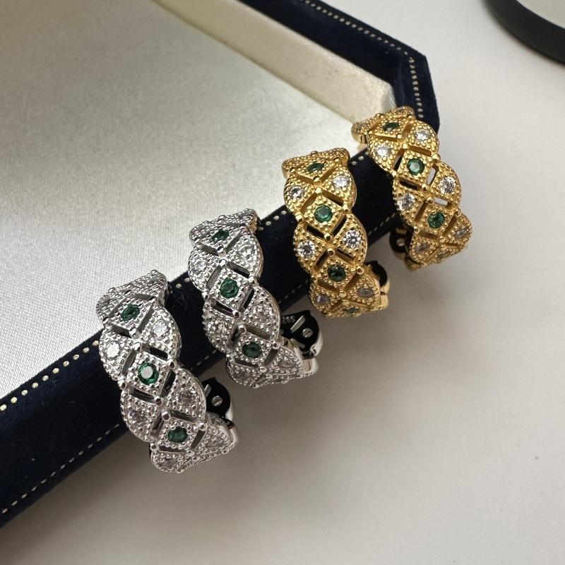 เวนชี่ เอส 925 ต่างหูเงินแท้โบราณประดับเพชรเซอร์คอน ดีไซน์โค้งงอเรียบหรูทันสมัย สีเขียวประดับเพชร
