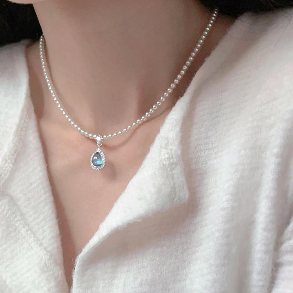 จี้เงินแท้ S925 ลายเมฆฝนขัดเงา พร้อมไข่มุกน้ำจืด สร้อยคอประดับกระดูกไหปลาร้า ดีไซน์เก๋สำหรับผู้หญิง