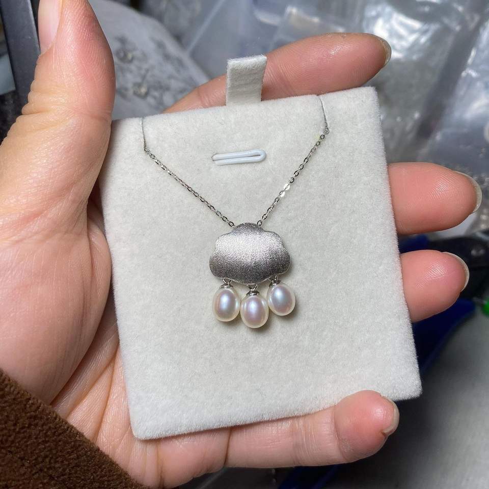 สร้อยคอเงินแท้ S925 รูปดาวขัดเงา ประดับเพชรหลากสี ดีไซน์เรียบหรู พร้อมจี้มุกสำหรับผู้หญิง