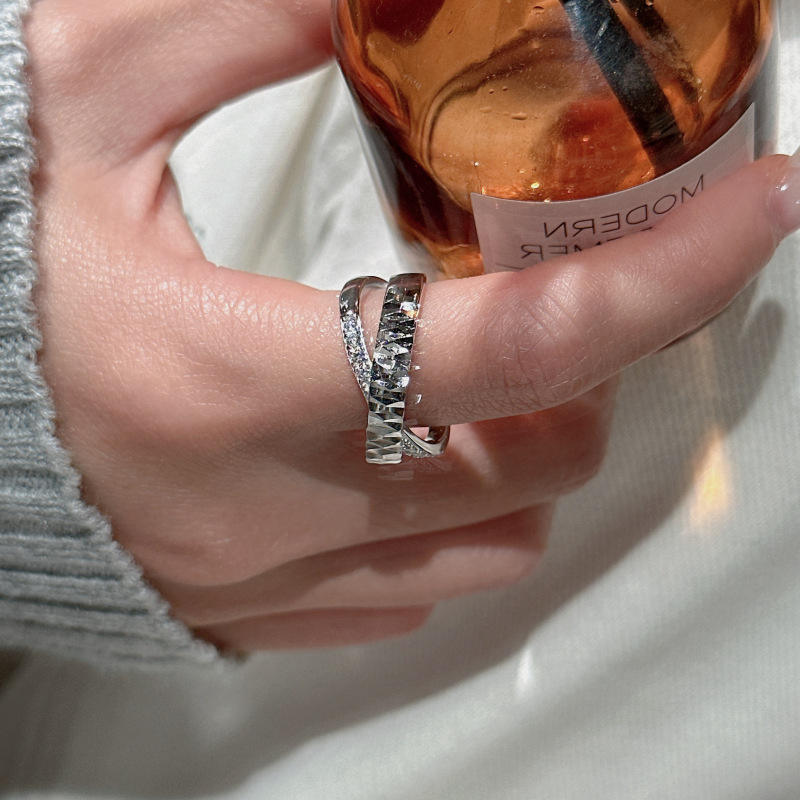 แหวนเงินแท้ S925 ลายดอกไม้ งาน CNC ชุบทอง 18K ดีไซน์เรียบหรู ทันสมัย สไตล์ยุคกลาง แบบเปิด ประดับลายกากบาท