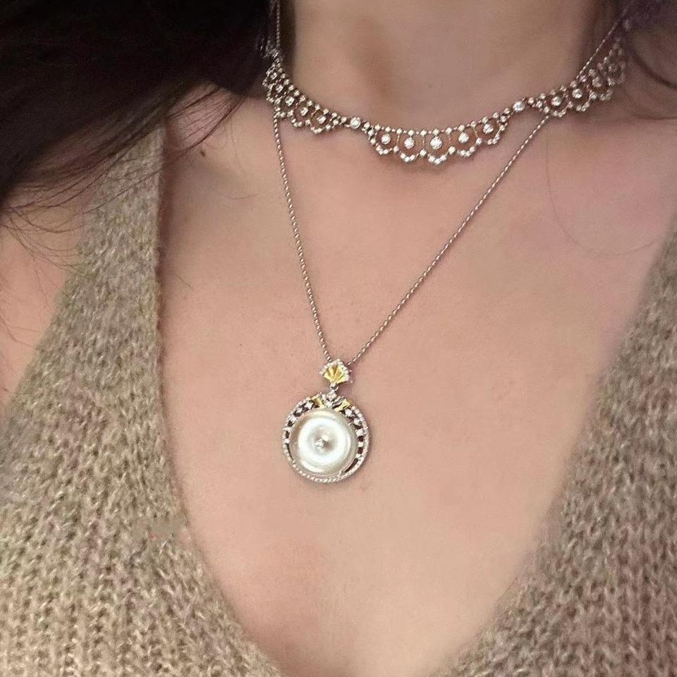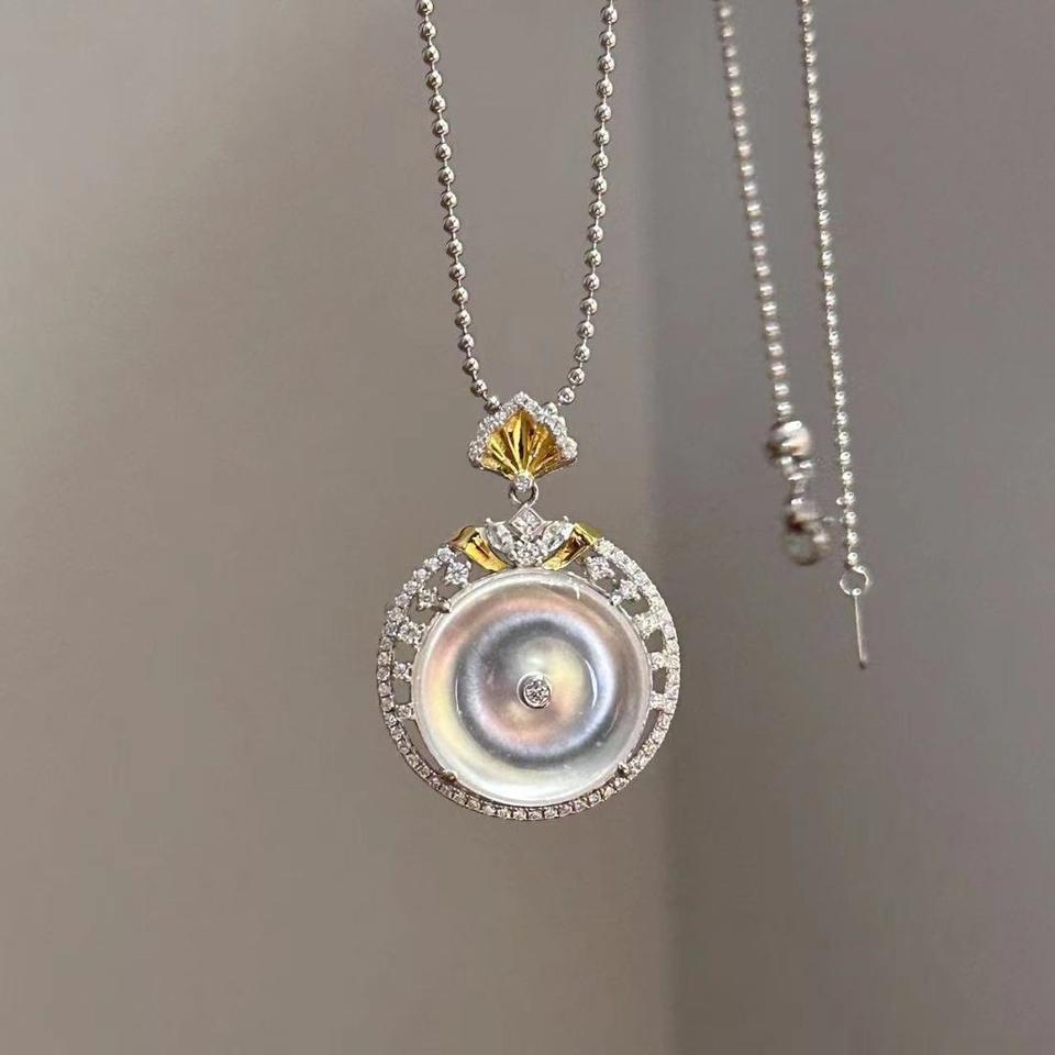 สร้อยคอเงินแท้ S925 สไตล์จีน ลายเส้นบะหมี่ ประดับหยกขาว ดีไซน์เรียบหรู ดูดีมีระดับ พร้อมไข่มุกเล็กๆ สไตล์สดใส