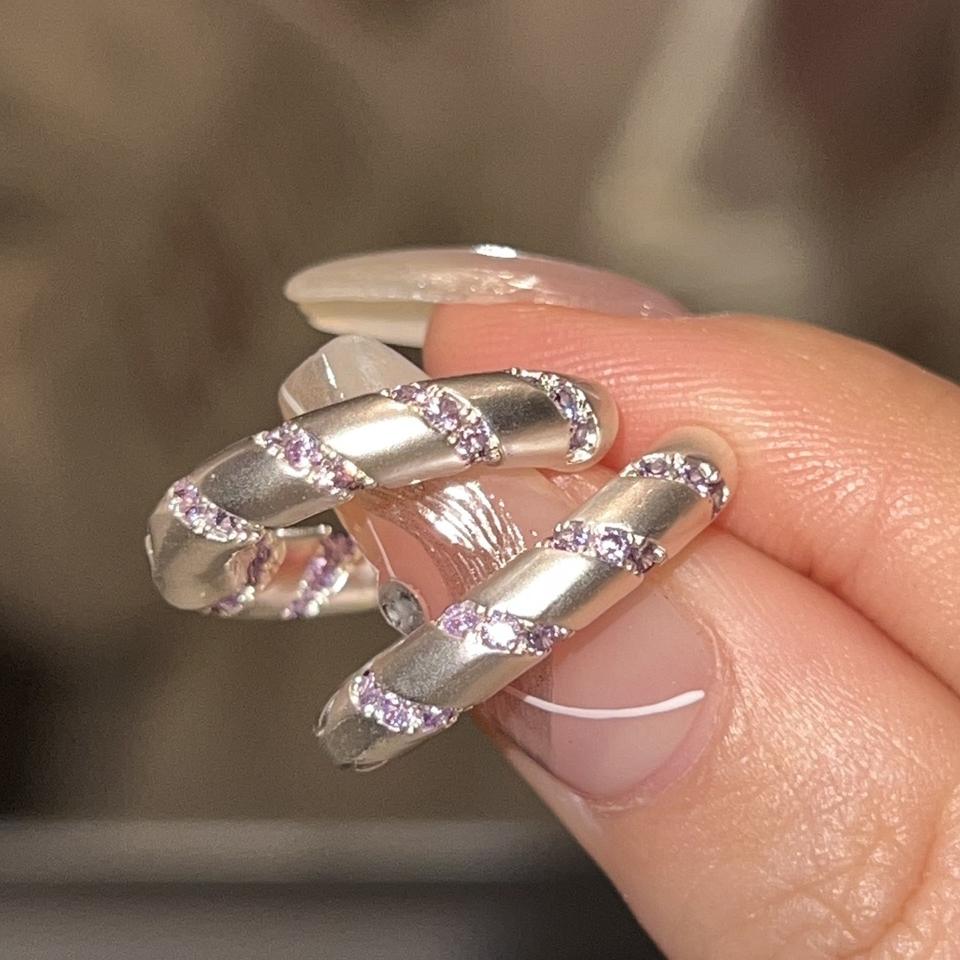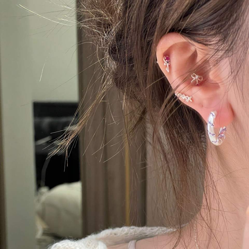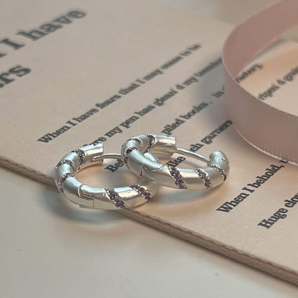 ต่างหูแบบหนีบเงินแท้ S925 ดีไซน์เกาหลีสุดน่ารัก สีเงินด้าน ประดับคริสตัลลาเวนเดอร์ ฝังแบบไมโคร ดีไซน์เฉพาะตัว