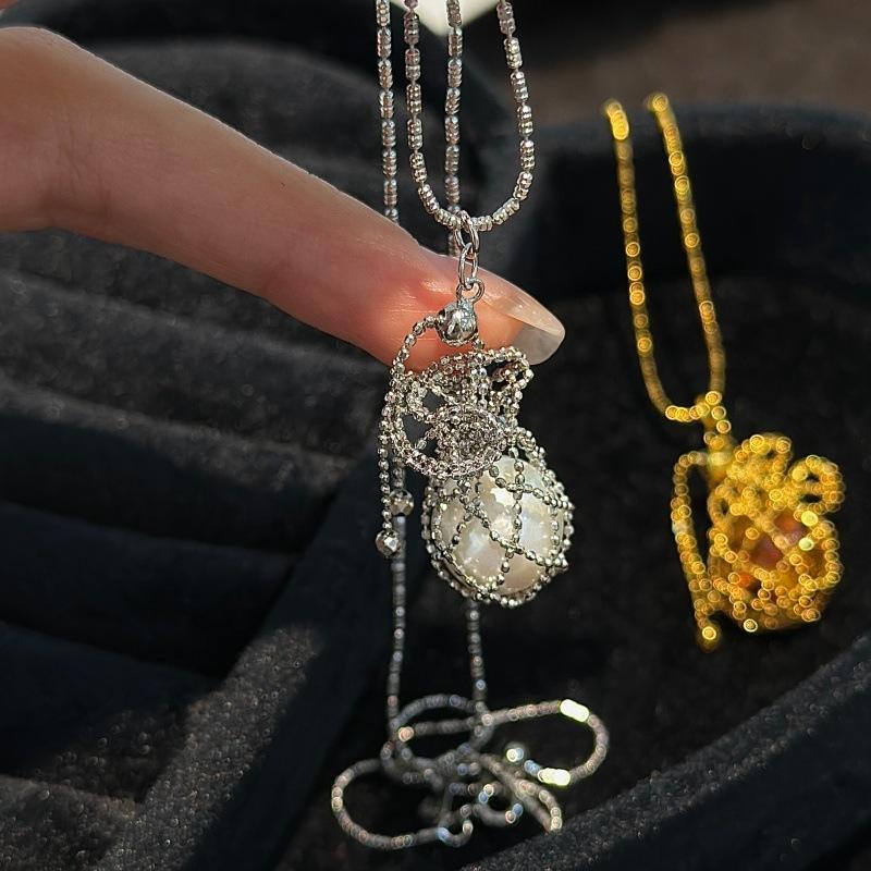 S925 Pure Silver Coin Bag Necklace Popular Luxury Vintage Fine Sparkling Pendant Fashionable Simple Little Red Book Necklace