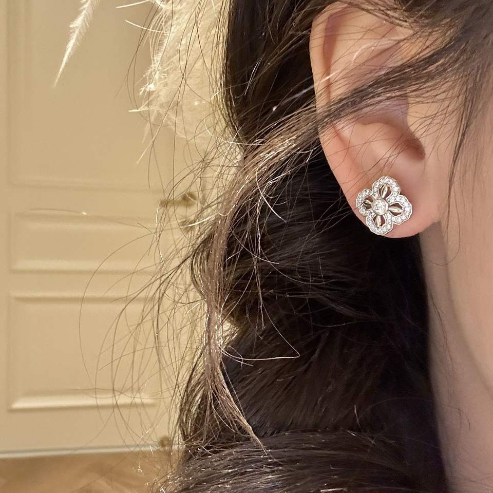S925 Pure Silver Cross Diamond Stud Earrings Exquisite New Chinese Four Leaf Flower Dot Design Versatile Niche Diamond Jewelry