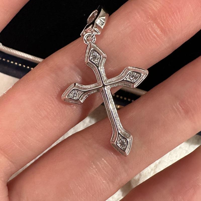จี้เงินแท้ S925 รูปไม้กางเขน ดีไซน์เรโทร ทันสมัย เรียบง่าย สไตล์วินเทจ แบบฝรั่งเศสโบราณ ประดับเพชรซิคอน