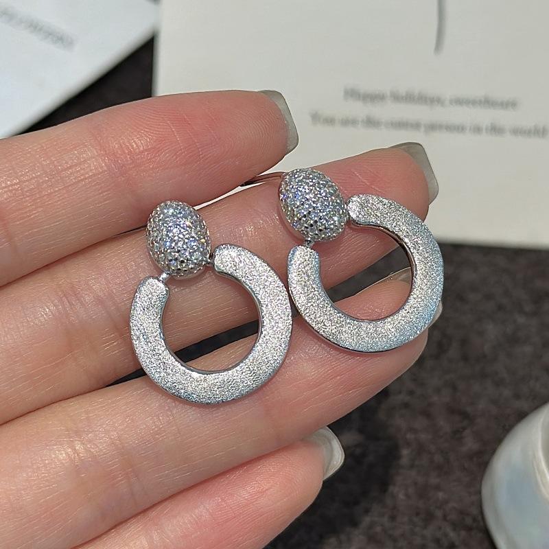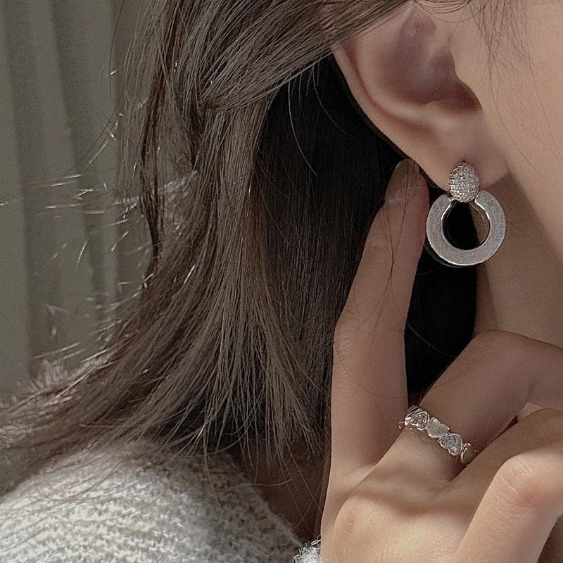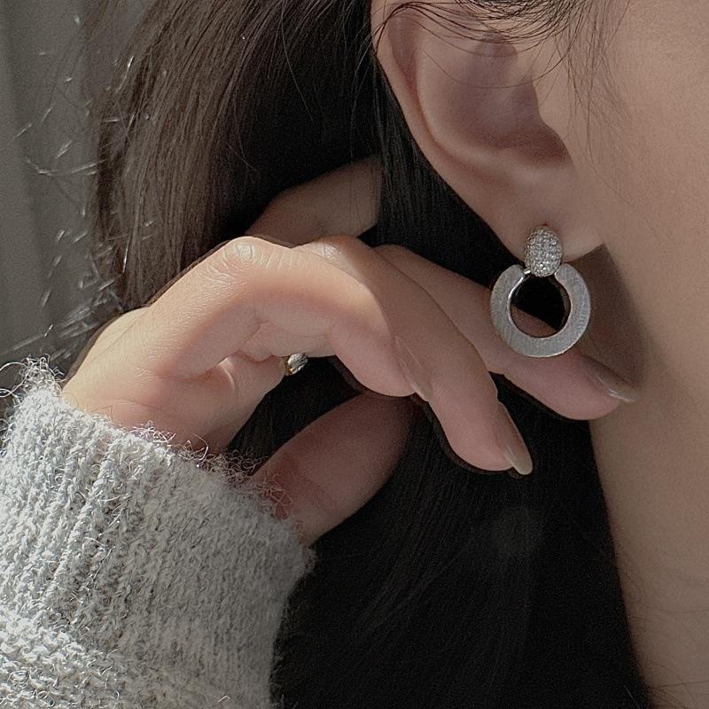 ต่างหูเงินแท้ S925 ดีไซน์เรียบง่ายทันสมัย ประดับเพชรซิคอนสไตล์วินเทจ รูปทรงเรขาคณิต ขัดเงาแบบกลม