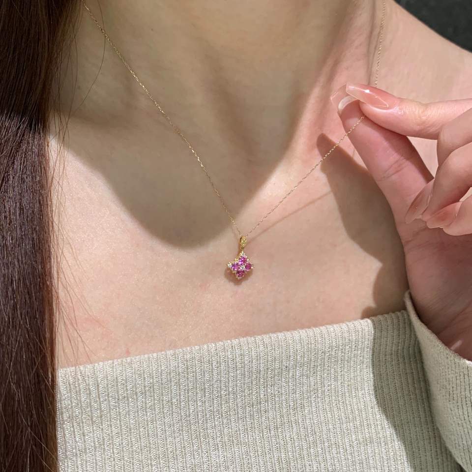 สร้อยคอเพชรเงินแท้ S925 สำหรับผู้หญิง สีชมพูหวาน ประณีต ประดับเพชรเต็มเส้น ดีไซน์หรูหรา สง่างาม