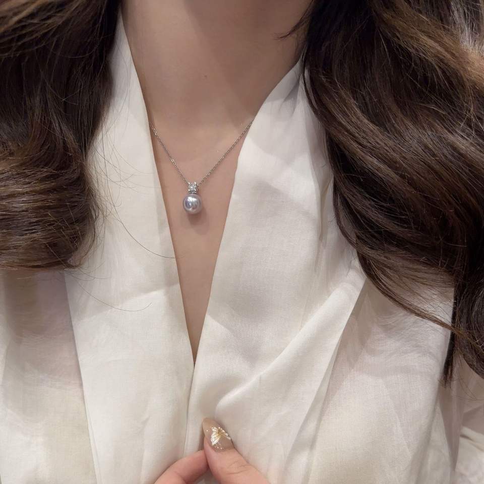 สร้อยคอเงินแท้ S925 ดีไซน์หรูหรา ประดับเพชรเหลืองทรงหยดน้ำเล็กๆ ดึงดูดโชคลาภ สร้อยคอมุกสำหรับคนมีระดับ