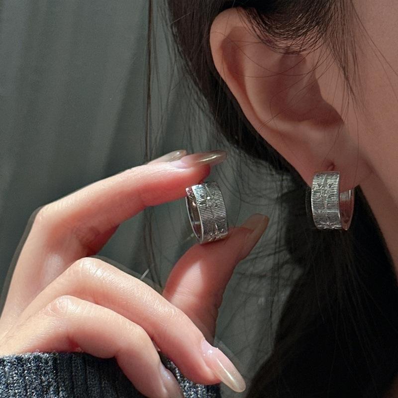 ต่างหูเงินแท้ S925 ดีไซน์เรียบหรู สไตล์ฝรั่งเศส ลายเส้น ประดับดาวหกแฉก สำหรับฤดูใบไม้ร่วงและฤดูหนาว