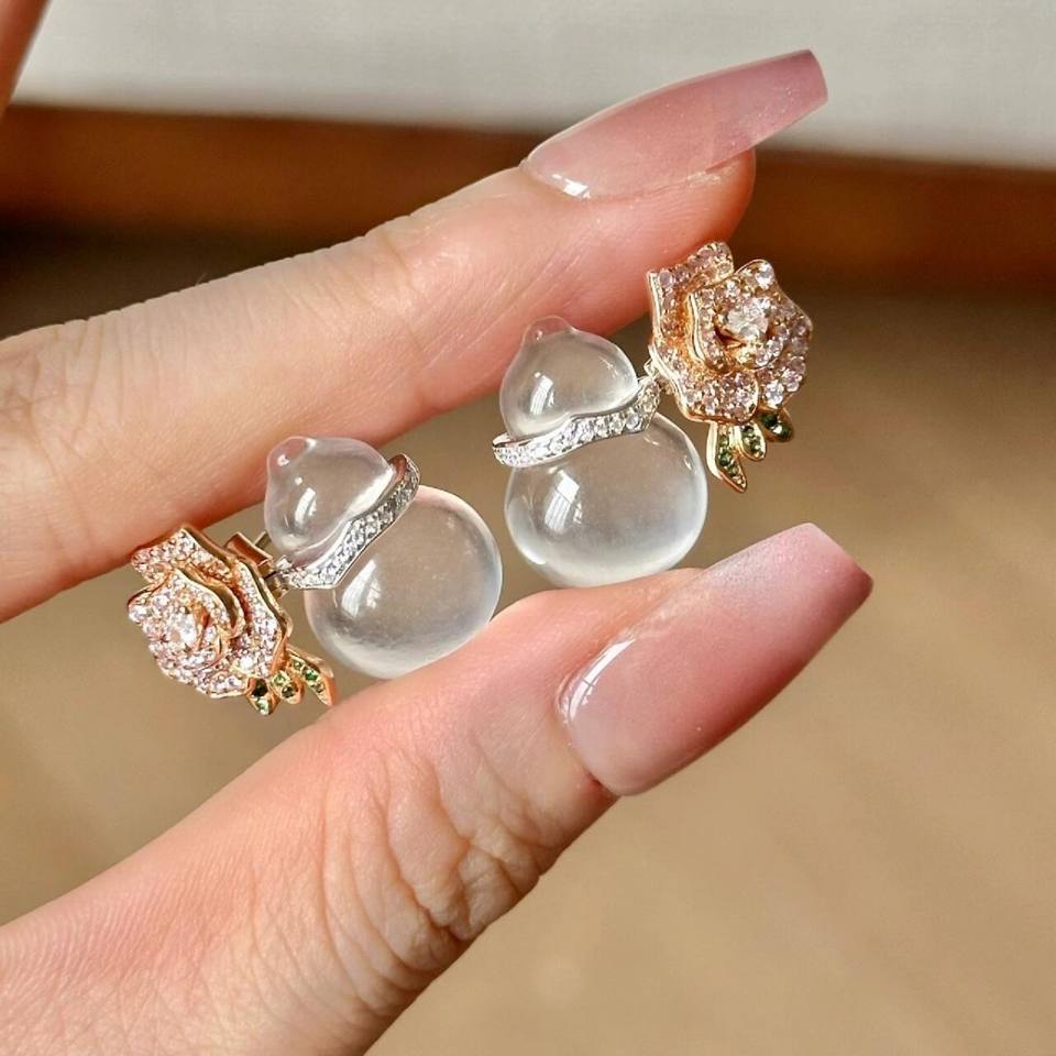 ต่างหูเงินแท้ S925 ดีไซน์ห้อยระย้า สง่างาม สไตล์จีนใหม่ ประดับหยกโฟมรูปดอกกุหลาบน้ำแข็ง ให้ความรู้สึกหรูหรา