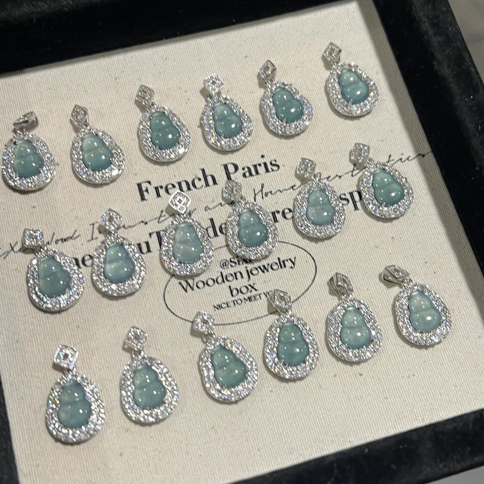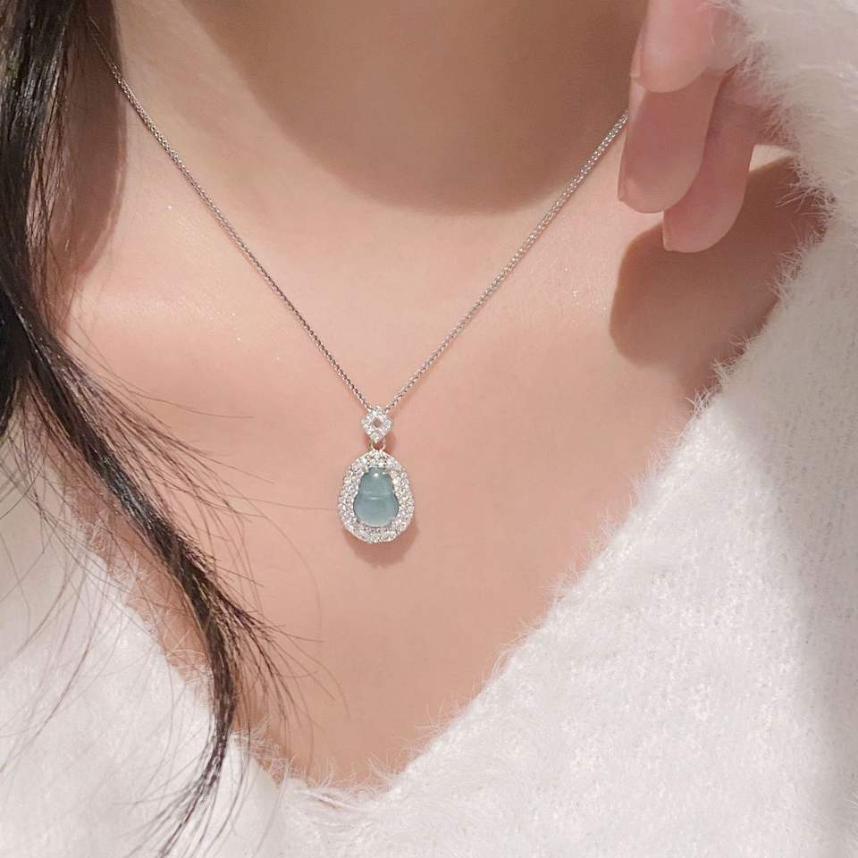 สร้อยคอจี้เงินแท้ S925 หยกจีนแท้ธรรมชาติ พร้อมสายคล้องแบบโคลเวอร์ ทรงไข่เล็ก สีเขียวสดใส