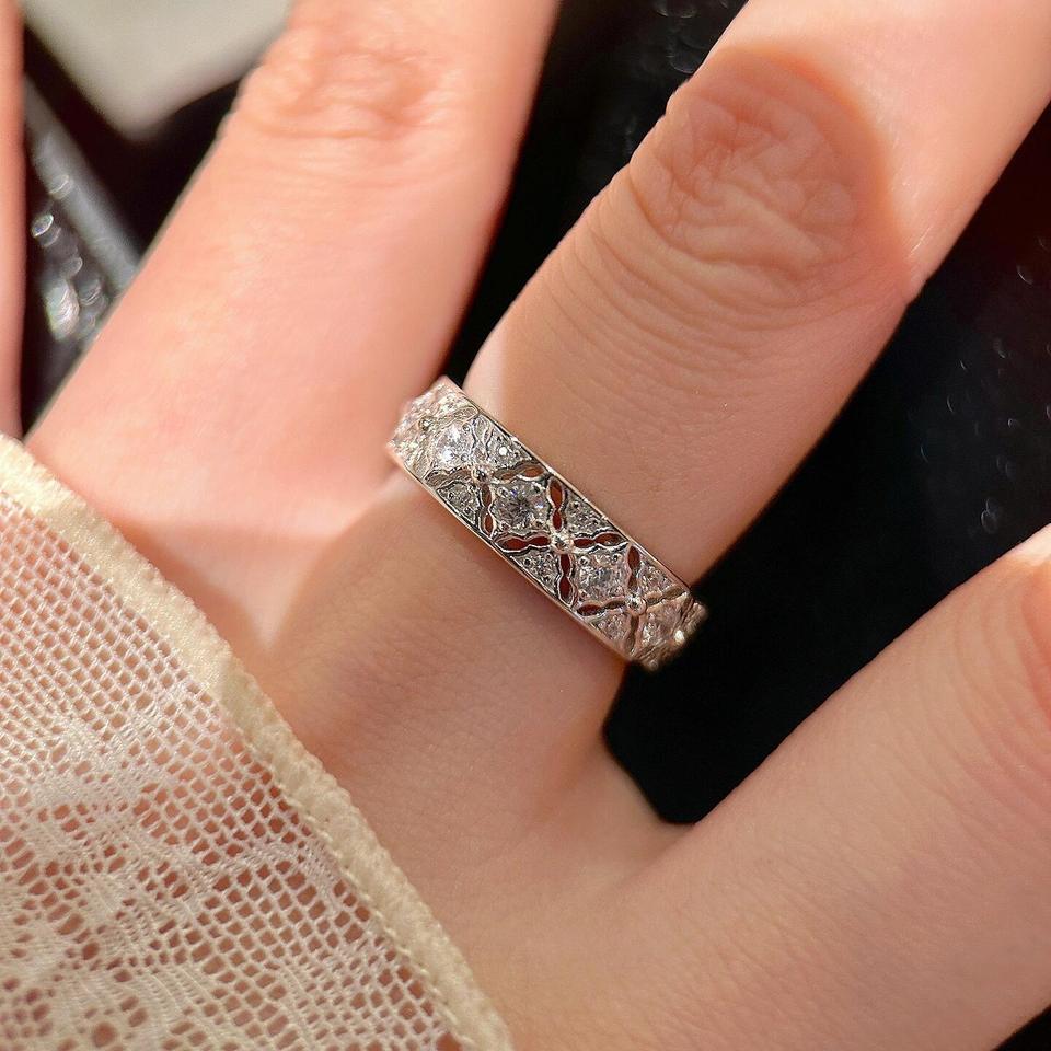 แหวนเงินแท้ S925 ลายดอกไม้ ประดับเพชร ลายตาราง แกะสลัก ดีไซน์หรูหรา ทันสมัย นิช แฟชั่น ไลท์ลักชัวรี่ อเนกประสงค์ ประณีต สำหรับผู้ชาย/ผู้หญิง
