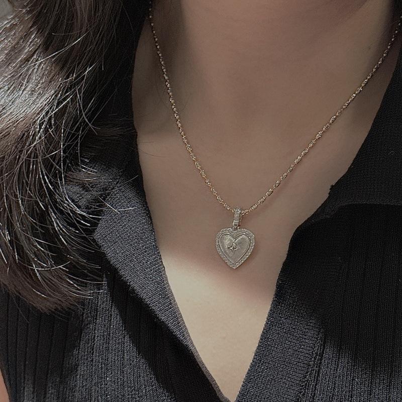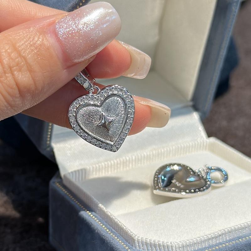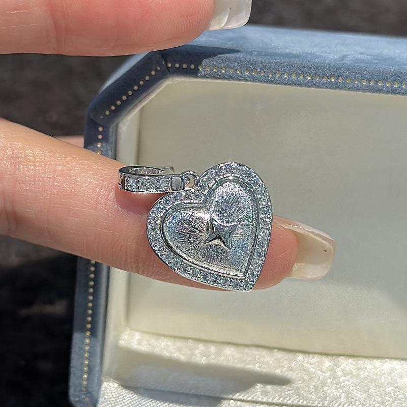 จี้เงินแท้ S925 รูปดาวสี่แฉก ดีไซน์หัวใจขัดเงาแบบวินเทจ สไตล์ฝรั่งเศสเรียบง่าย วัสดุหลักแพลตตินัม