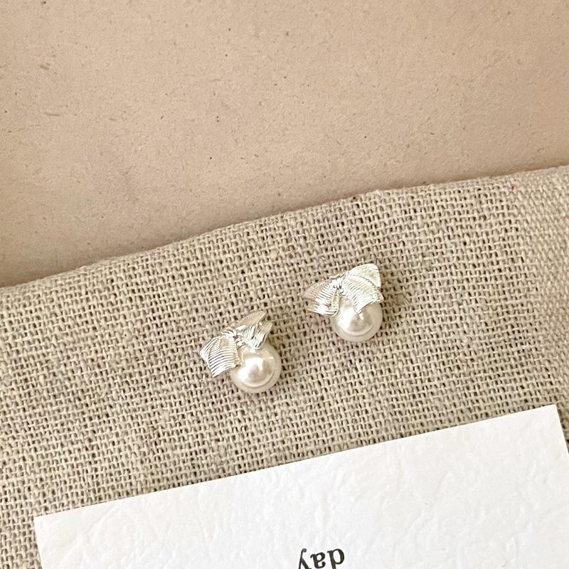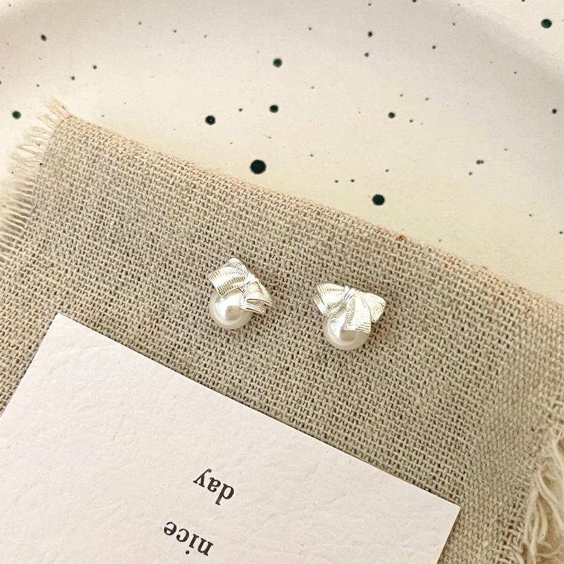 S925 Pure Silver French Luxury Earrings High-End Bow Pearl Shell with Niche Temperament Versatile Fashion Studs