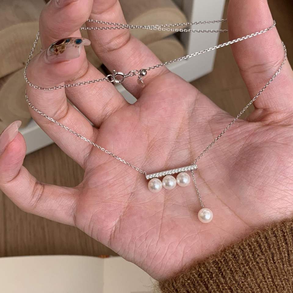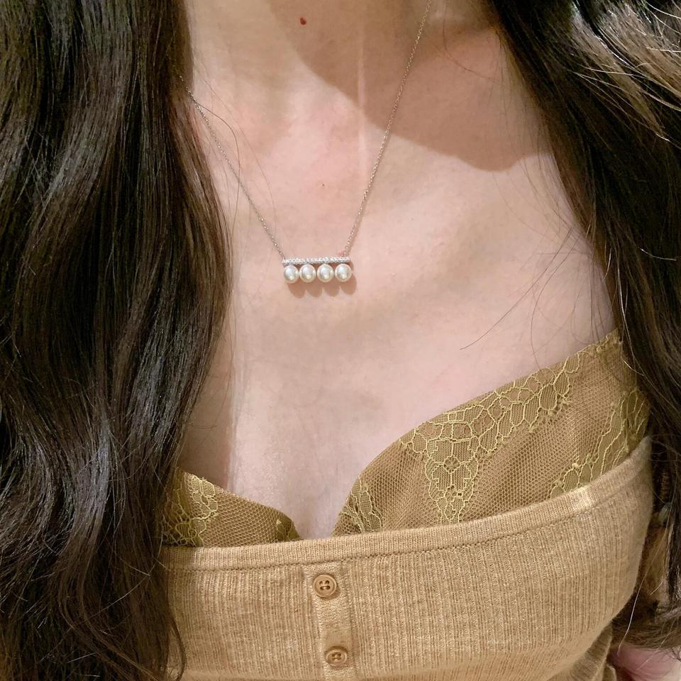สร้อยคอเงินแท้ S925 ดีไซน์โบว์เจ้าหญิงฝรั่งเศส ประดับเพชรซิคอน สวยหวาน เรียบง่าย เหมาะสำหรับใส่ไปทำงาน หรือใส่ได้หลากหลายโอกาส พร้อมไข่มุก