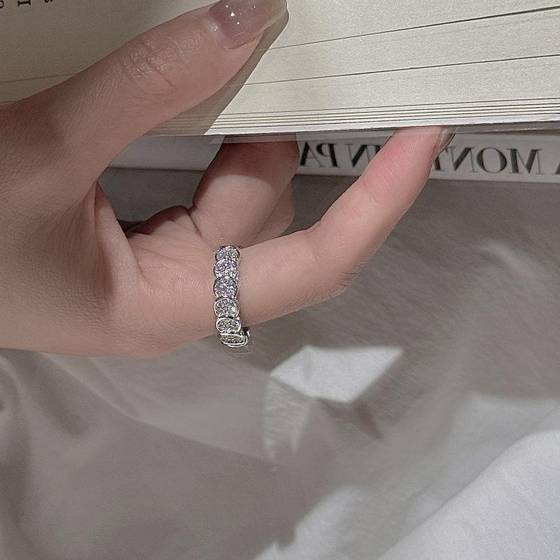 แหวนเงินแท้ S925 ดีไซน์เรขาคณิต ดีไซน์เฉพาะตัว เรียบง่าย ทันสมัย สไตล์วินเทจ แหวนเปิด ประดับเพชรทรงรี