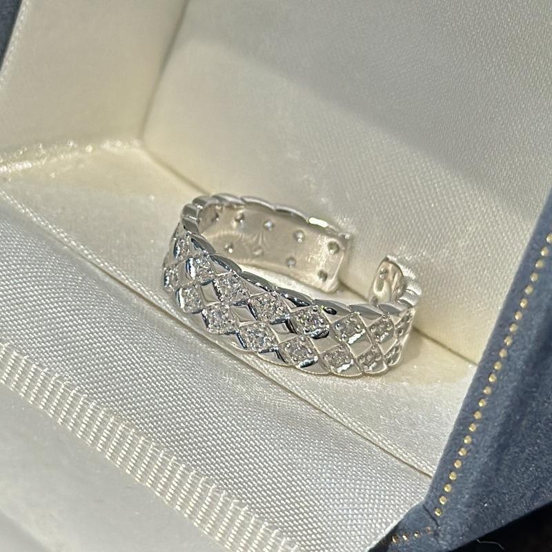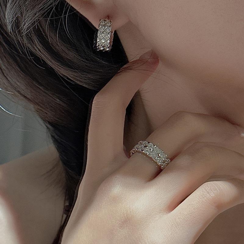 แหวนเงินแท้ S925 รูปทรงเรขาคณิต ประดับเพชรวินเทจ ชุบทองคำขาวและโรเดียม