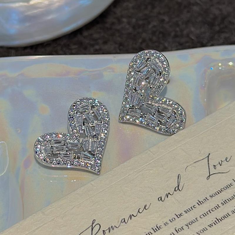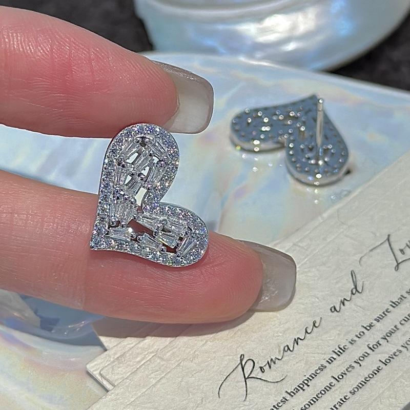 ต่างหูเงินแท้ S925คริสตัลเพทายรูปหัวใจสไตล์วินเทจเรียบง่ายทันสมัยหรูหรา