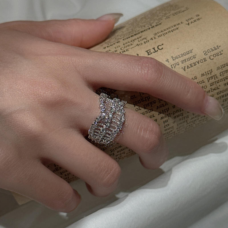 แหวนเงินแท้ S925 ประดับเพชรแบบกลวง ดีไซน์เรียบหรู ดูดีมีสไตล์ แบบโบราณ ย้อนยุค ทันสมัย