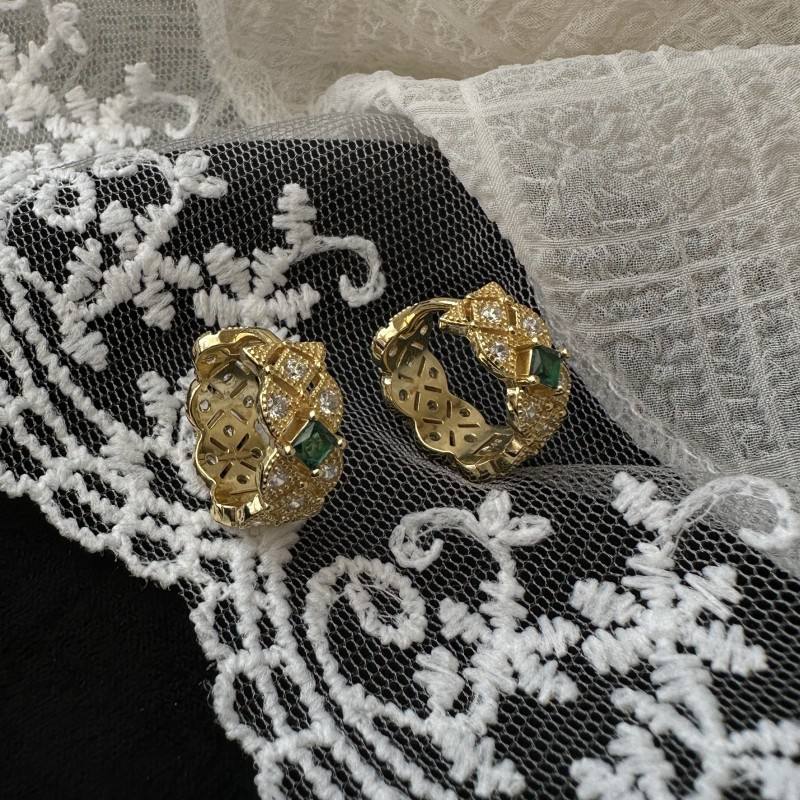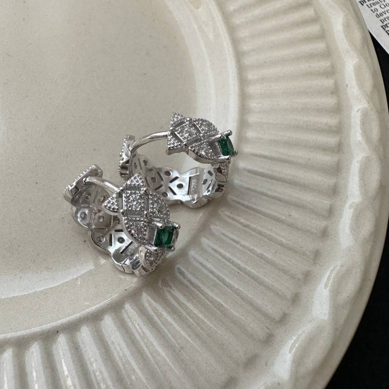 ต่างหูเงินแท้ S925 ลายลูกไม้สไตล์อิตาลี ดีไซน์วินเทจ ประดับเพชรทรงตารางสีเขียวเซอร์โคเนียม ต่างหูเพชรสุดพิเศษ