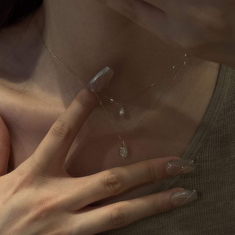 สร้อยคอเงินแท้ S925 ดีไซน์มินิมอลสองชั้นสำหรับผู้หญิง สายแบบกระดูกงู จี้ทรงหยดน้ำ ดีไซน์เฉพาะ แฟชั่นสไตล์โอลีฟ มิลเล็ต