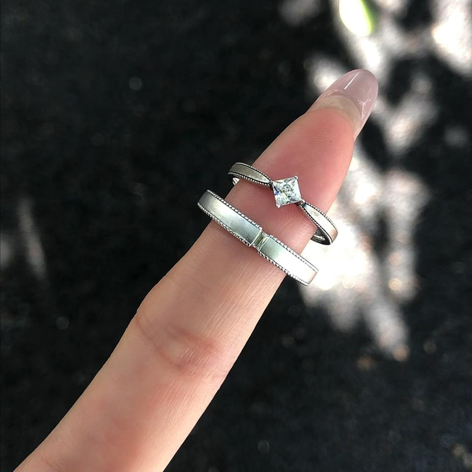 แหวนเงินแท้ S925 ดีไซน์มินิมอลสำหรับผู้หญิง ประดับเพชรทรงสี่เหลี่ยมเล็ก ตัดแบบ Princess Cut ดีไซน์วงกลมเรียบง่าย ซ้อนกันได้ ใช้งานได้หลากหลาย สไตล์เฉพาะตัว