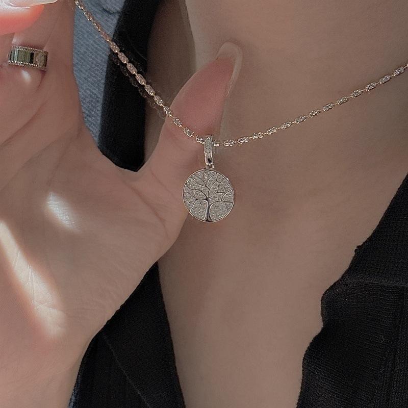 จี้ต้นไม้แห่งชีวิต ดีไซน์เฉพาะตัว ทำจากเงินแท้ S925 เครื่องประดับเรียบง่าย ทันสมัย สไตล์วินเทจ ประดับด้วยเพชรเม็ดเล็กทรงกลม